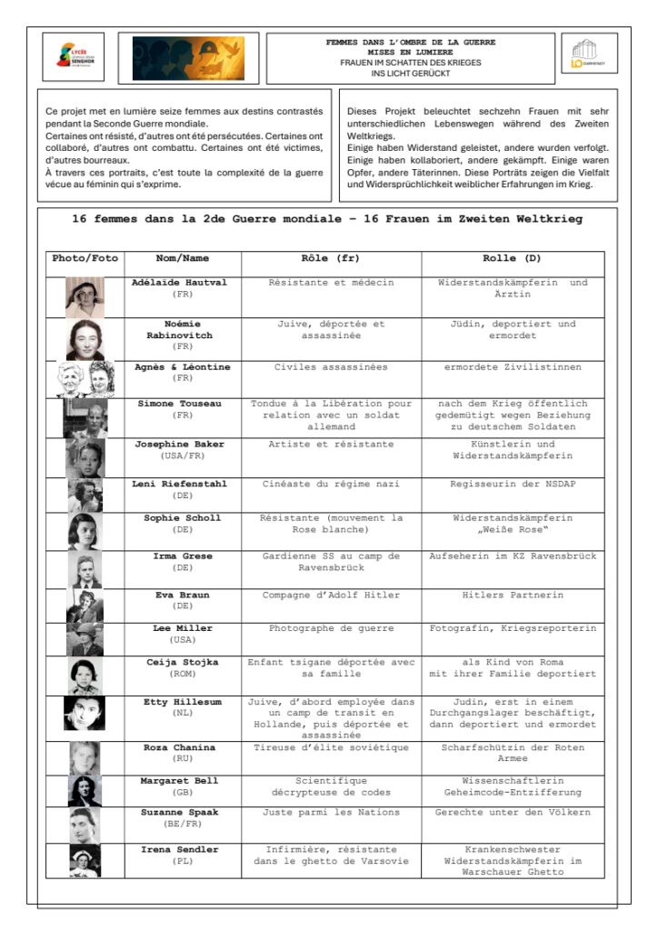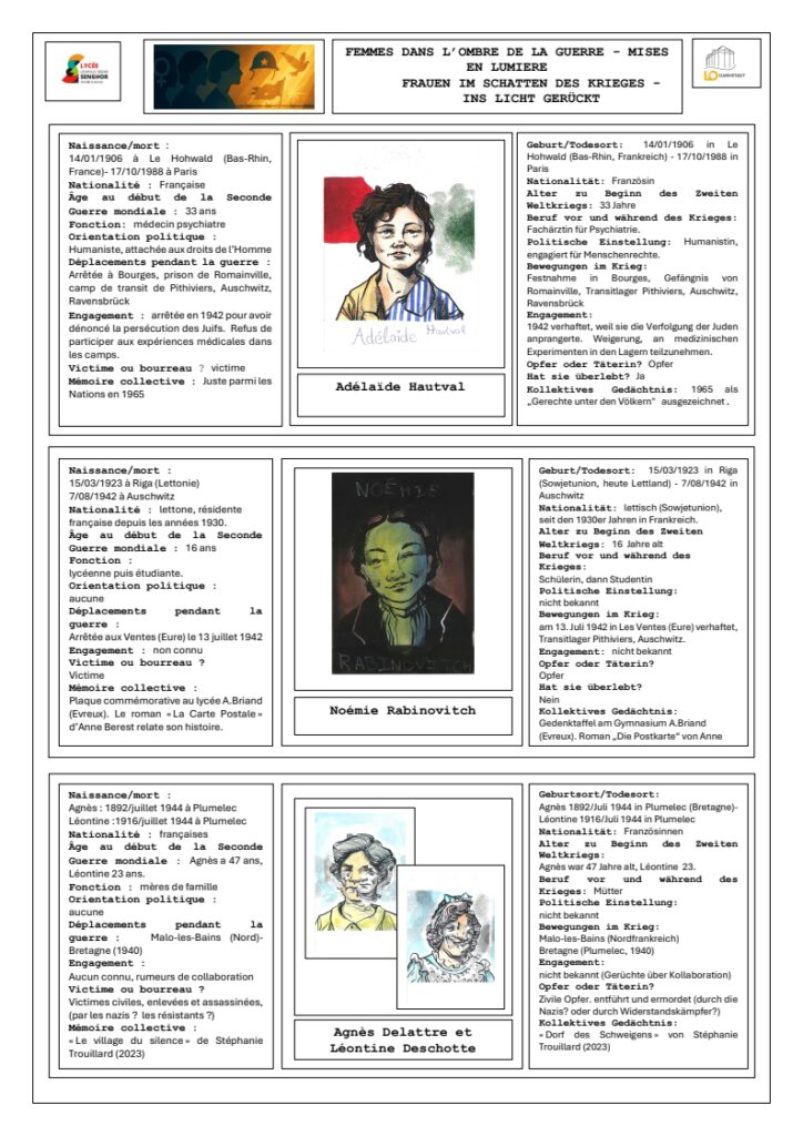 Schüler/innen das Leben dieser Frauen mündlich auf Deutsch und Französisch.